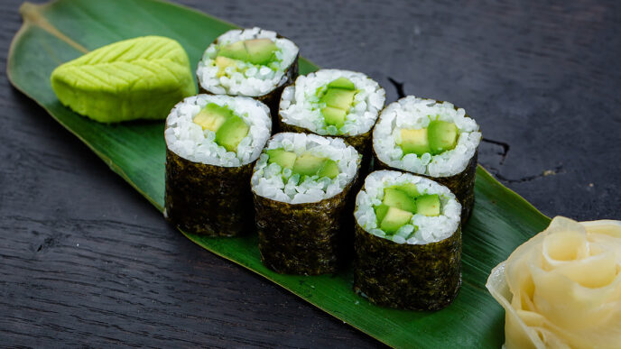 - Роллы с овощами и авокадо